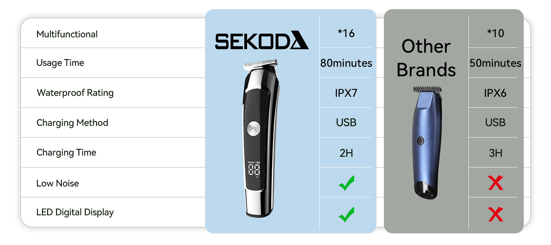 Sekoda clipper is equipped with a high-performance lithium battery that provides long-lasting power, so you can say goodbye to charging hassles. Whether you're trimming hair for the whole family or packing it for a long trip, it's always ready to provide an uninterrupted grooming experience, anytime, anywhere.