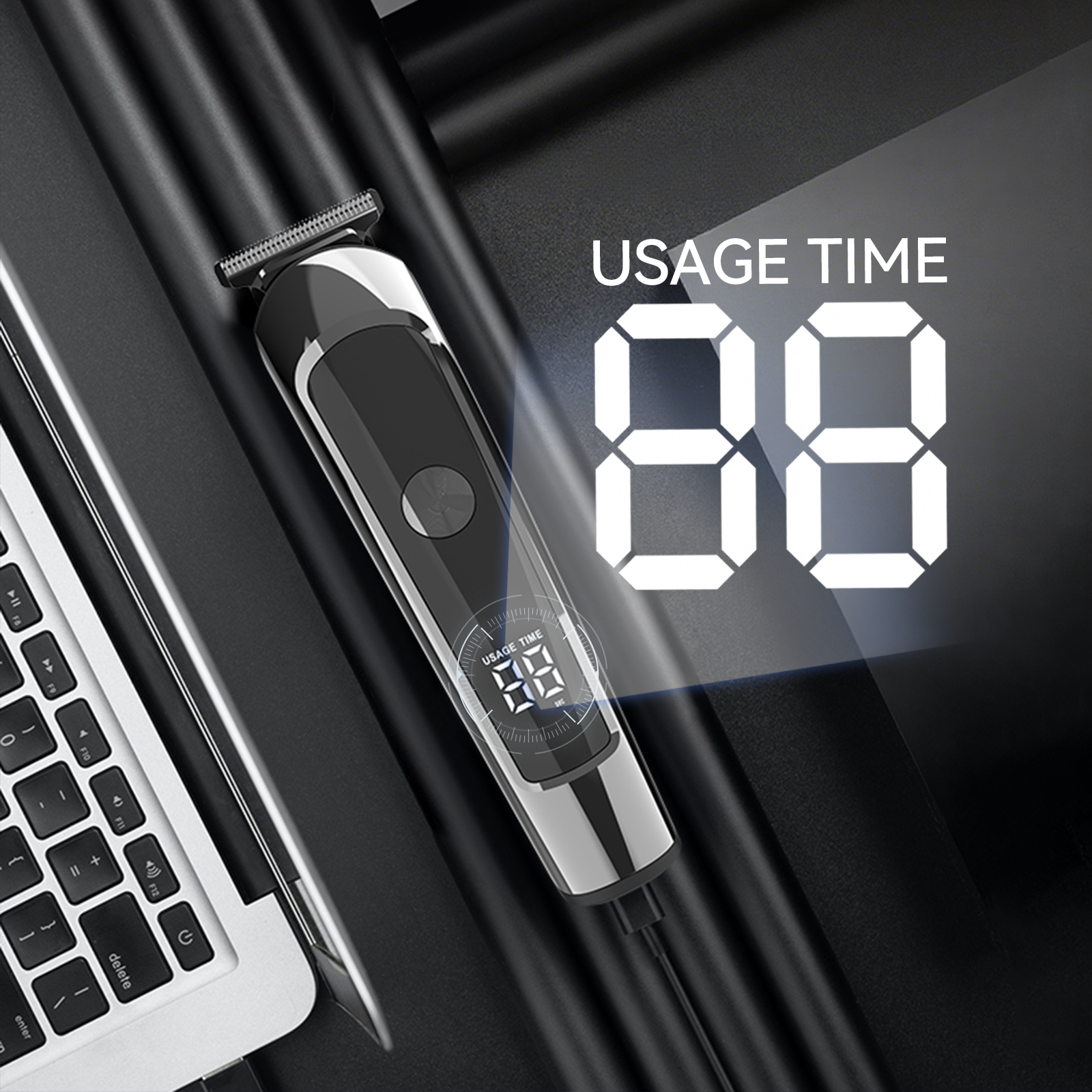 Say goodbye to cluttered countertops and a drawer full of tools! This multi-functional grooming kit is your complete personal stylist, designed for a total image refresh. It's not just a simple hair clipper—with six professional, interchangeable heads, it precisely addresses every single grooming need:U-blade clipper,T-blade detailer,engraving blade,foil shaver,nose & ear brimmer,body groomer.